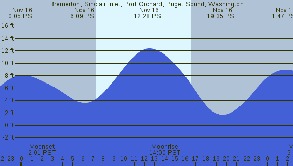 Tidal Heights at Bremerton, Sinclair Inlet, Port Orchard, Puget Sound, Washington