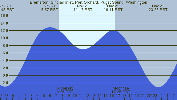 Tidal Heights at Bremerton, Sinclair Inlet, Port Orchard, Puget Sound, Washington