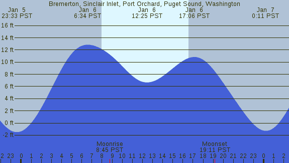 Tidal Heights at Bremerton, Sinclair Inlet, Port Orchard, Puget Sound, Washington
