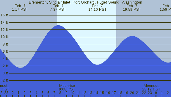 Tidal Heights at Bremerton, Sinclair Inlet, Port Orchard, Puget Sound, Washington