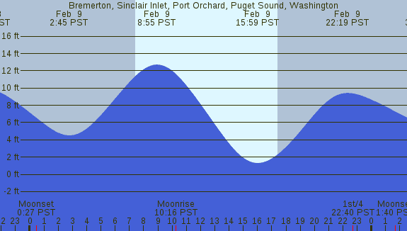 Tidal Heights at Bremerton, Sinclair Inlet, Port Orchard, Puget Sound, Washington