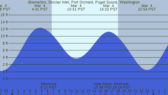 Tidal Heights at Bremerton, Sinclair Inlet, Port Orchard, Puget Sound, Washington