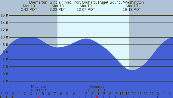Tidal Heights at Bremerton, Sinclair Inlet, Port Orchard, Puget Sound, Washington