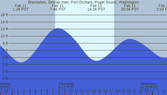 Tidal Heights at Bremerton, Sinclair Inlet, Port Orchard, Puget Sound, Washington