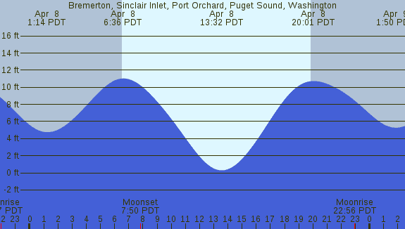 Tidal Heights at Bremerton, Sinclair Inlet, Port Orchard, Puget Sound, Washington