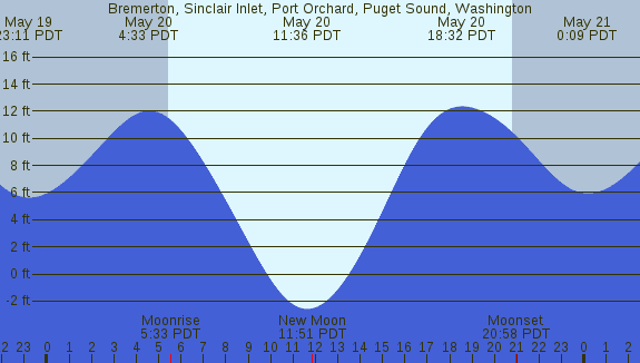 Tidal Heights at Bremerton, Sinclair Inlet, Port Orchard, Puget Sound, Washington