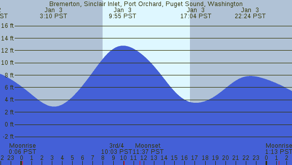 Tidal Heights at Bremerton, Sinclair Inlet, Port Orchard, Puget Sound, Washington