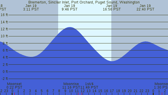 Tidal Heights at Bremerton, Sinclair Inlet, Port Orchard, Puget Sound, Washington