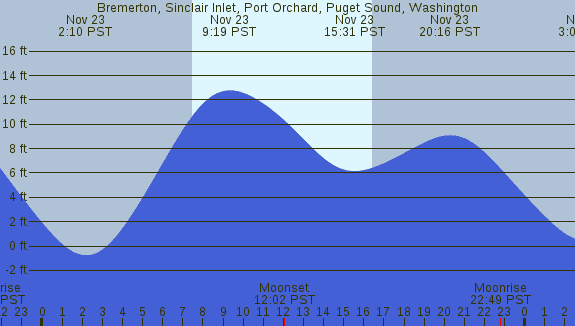 Tidal Heights at Bremerton, Sinclair Inlet, Port Orchard, Puget Sound, Washington