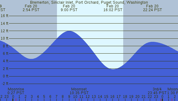 Tidal Heights at Bremerton, Sinclair Inlet, Port Orchard, Puget Sound, Washington