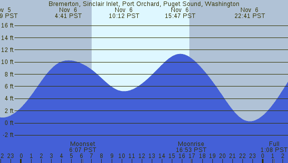 Tidal Heights at Bremerton, Sinclair Inlet, Port Orchard, Puget Sound, Washington