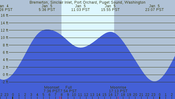 Tidal Heights at Bremerton, Sinclair Inlet, Port Orchard, Puget Sound, Washington