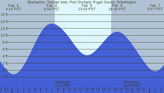 Tidal Heights at Bremerton, Sinclair Inlet, Port Orchard, Puget Sound, Washington