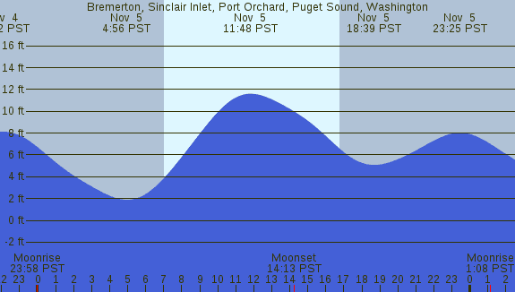 Tidal Heights at Bremerton, Sinclair Inlet, Port Orchard, Puget Sound, Washington
