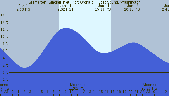Tidal Heights at Bremerton, Sinclair Inlet, Port Orchard, Puget Sound, Washington