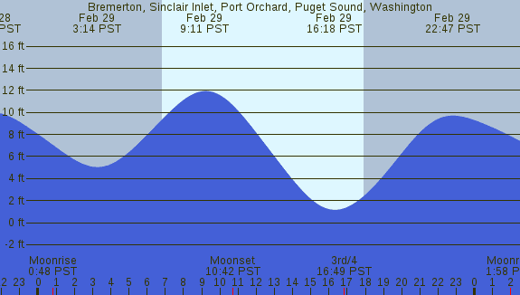 Tidal Heights at Bremerton, Sinclair Inlet, Port Orchard, Puget Sound, Washington