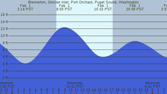 Tidal Heights at Bremerton, Sinclair Inlet, Port Orchard, Puget Sound, Washington
