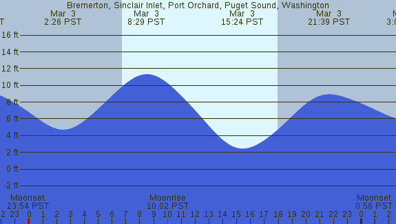 Tidal Heights at Bremerton, Sinclair Inlet, Port Orchard, Puget Sound, Washington