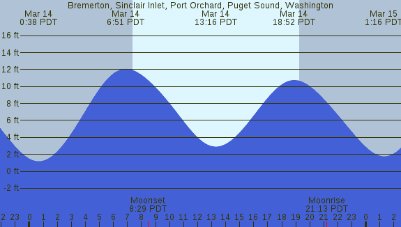Tidal Heights at Bremerton, Sinclair Inlet, Port Orchard, Puget Sound, Washington