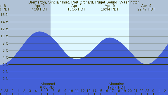 Tidal Heights at Bremerton, Sinclair Inlet, Port Orchard, Puget Sound, Washington