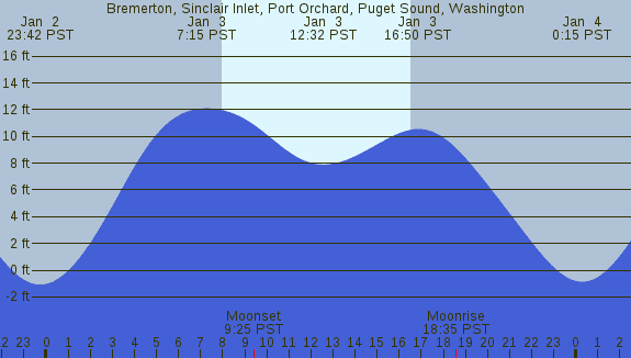 Tidal Heights at Bremerton, Sinclair Inlet, Port Orchard, Puget Sound, Washington