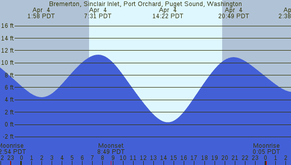 Tidal Heights at Bremerton, Sinclair Inlet, Port Orchard, Puget Sound, Washington