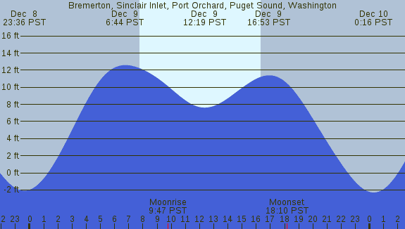 Tidal Heights at Bremerton, Sinclair Inlet, Port Orchard, Puget Sound, Washington