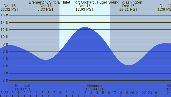 Tidal Heights at Bremerton, Sinclair Inlet, Port Orchard, Puget Sound, Washington