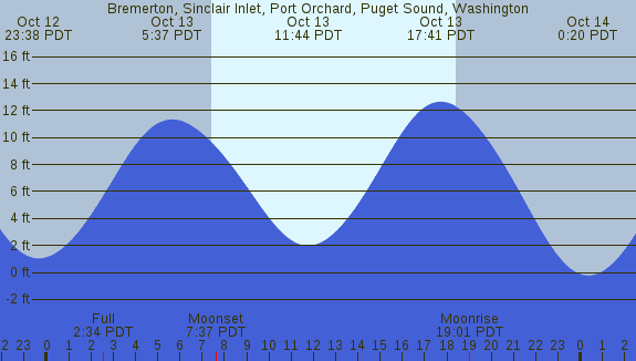 Tidal Heights at Bremerton, Sinclair Inlet, Port Orchard, Puget Sound, Washington