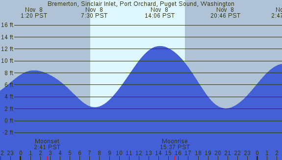 Tidal Heights at Bremerton, Sinclair Inlet, Port Orchard, Puget Sound, Washington