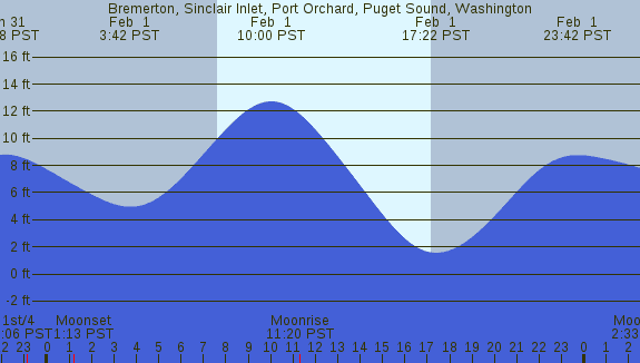 Tidal Heights at Bremerton, Sinclair Inlet, Port Orchard, Puget Sound, Washington