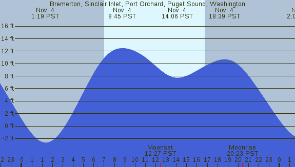 Tidal Heights at Bremerton, Sinclair Inlet, Port Orchard, Puget Sound, Washington
