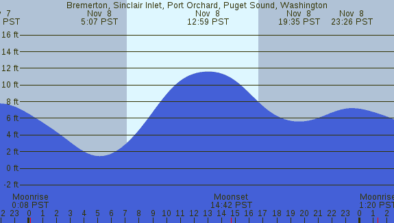 Tidal Heights at Bremerton, Sinclair Inlet, Port Orchard, Puget Sound, Washington