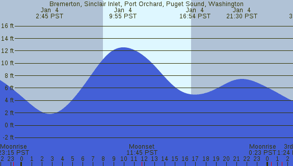 Tidal Heights at Bremerton, Sinclair Inlet, Port Orchard, Puget Sound, Washington