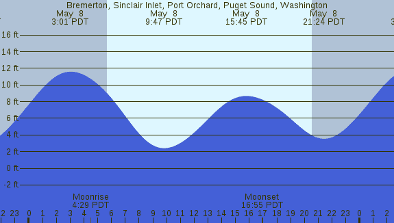 Tidal Heights at Bremerton, Sinclair Inlet, Port Orchard, Puget Sound, Washington