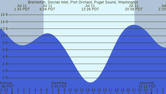 Tidal Heights at Bremerton, Sinclair Inlet, Port Orchard, Puget Sound, Washington