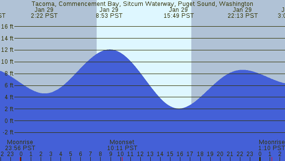 Tidal Heights at Tacoma, Commencement Bay, Sitcum Waterway, Puget Sound, Washington