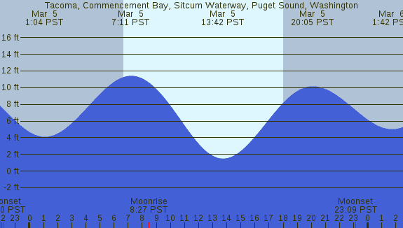 Tidal Heights at Tacoma, Commencement Bay, Sitcum Waterway, Puget Sound, Washington