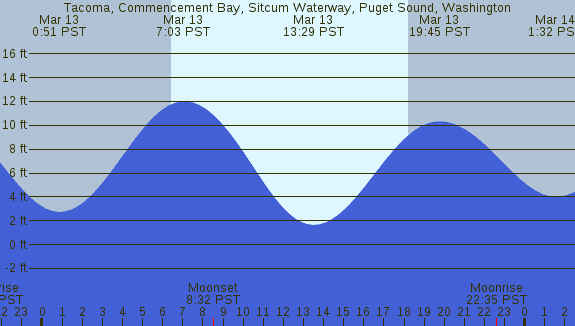 Tidal Heights at Tacoma, Commencement Bay, Sitcum Waterway, Puget Sound, Washington