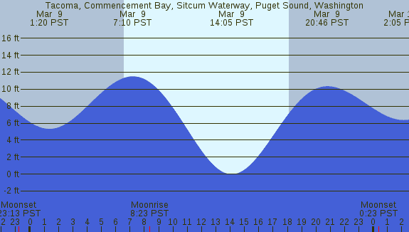 Tidal Heights at Tacoma, Commencement Bay, Sitcum Waterway, Puget Sound, Washington