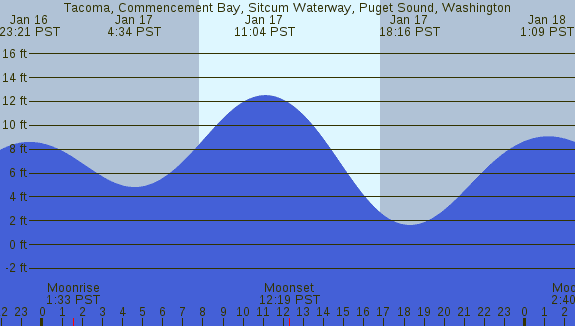 Tidal Heights at Tacoma, Commencement Bay, Sitcum Waterway, Puget Sound, Washington
