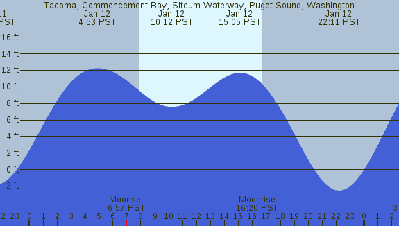 Tidal Heights at Tacoma, Commencement Bay, Sitcum Waterway, Puget Sound, Washington