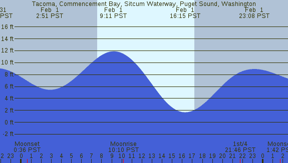 Tidal Heights at Tacoma, Commencement Bay, Sitcum Waterway, Puget Sound, Washington