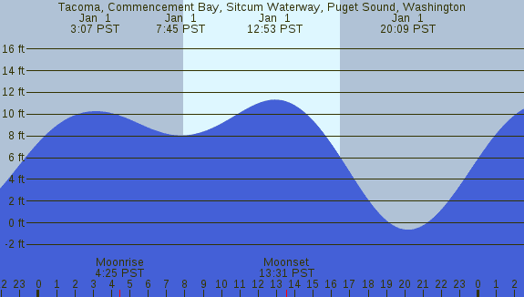 Tidal Heights at Tacoma, Commencement Bay, Sitcum Waterway, Puget Sound, Washington