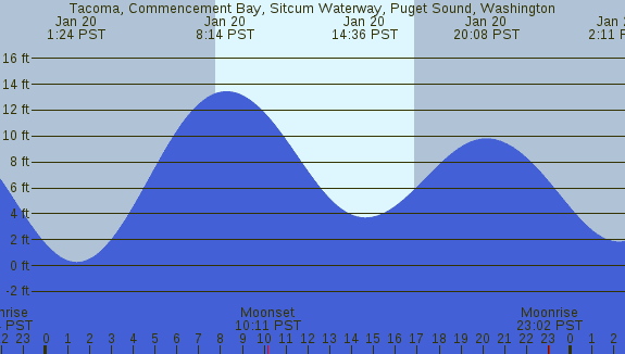 Tidal Heights at Tacoma, Commencement Bay, Sitcum Waterway, Puget Sound, Washington