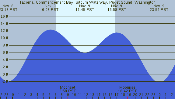 Tidal Heights at Tacoma, Commencement Bay, Sitcum Waterway, Puget Sound, Washington