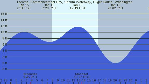 Tidal Heights at Tacoma, Commencement Bay, Sitcum Waterway, Puget Sound, Washington