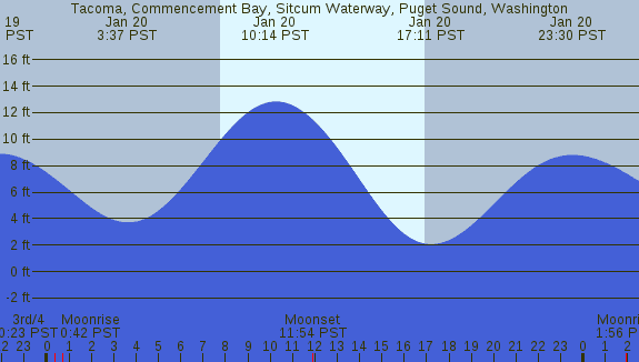 Tidal Heights at Tacoma, Commencement Bay, Sitcum Waterway, Puget Sound, Washington