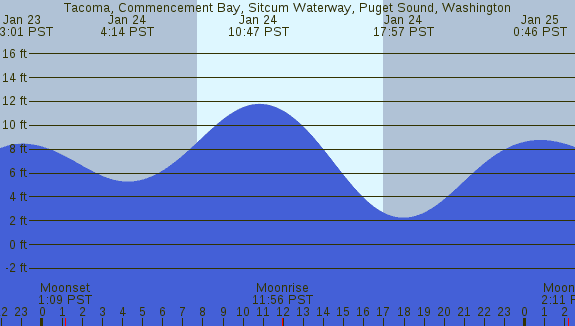 Tidal Heights at Tacoma, Commencement Bay, Sitcum Waterway, Puget Sound, Washington