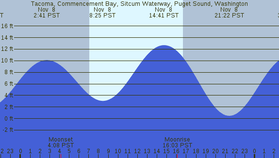 Tidal Heights at Tacoma, Commencement Bay, Sitcum Waterway, Puget Sound, Washington